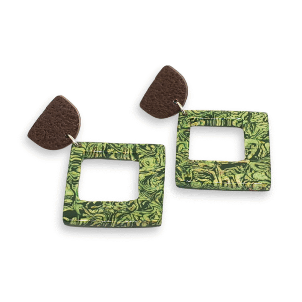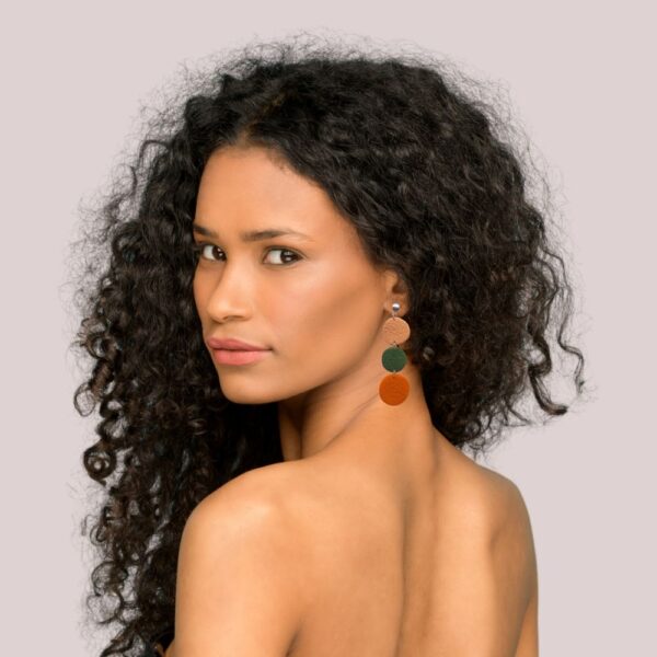 Brinco Orgânico Laranja, Verde e Nude com Pino em Aço Inoxidável