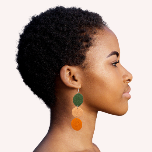 Brinco Orgânico Laranja, Verde e Nude com Anzol em Aço Inoxidável